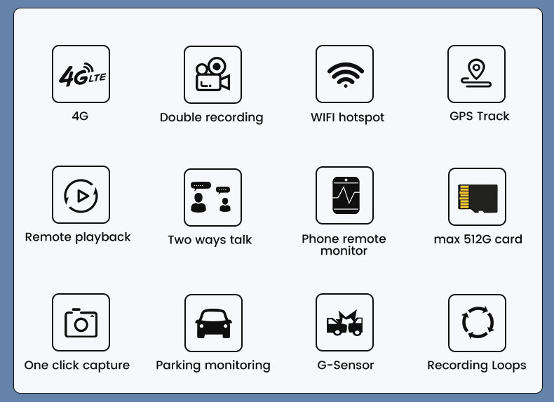 دوربین ثبت وقایع خودرو سیم کارت خور 2K مدل M7 قابلیت های متنوعی مثل انتقال تصویر و موقعیت خودرو از طریق سیم کارت و بازبینی تصاویر ضبط شده و هشدار در صورت برخورد یا حرکت خودرو را فراهم کرده است.